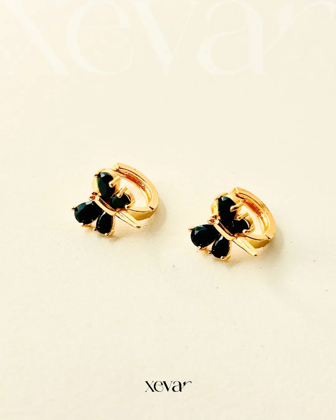 Butterfly Hoop Earrings with gold-tone finish and black gemstones.