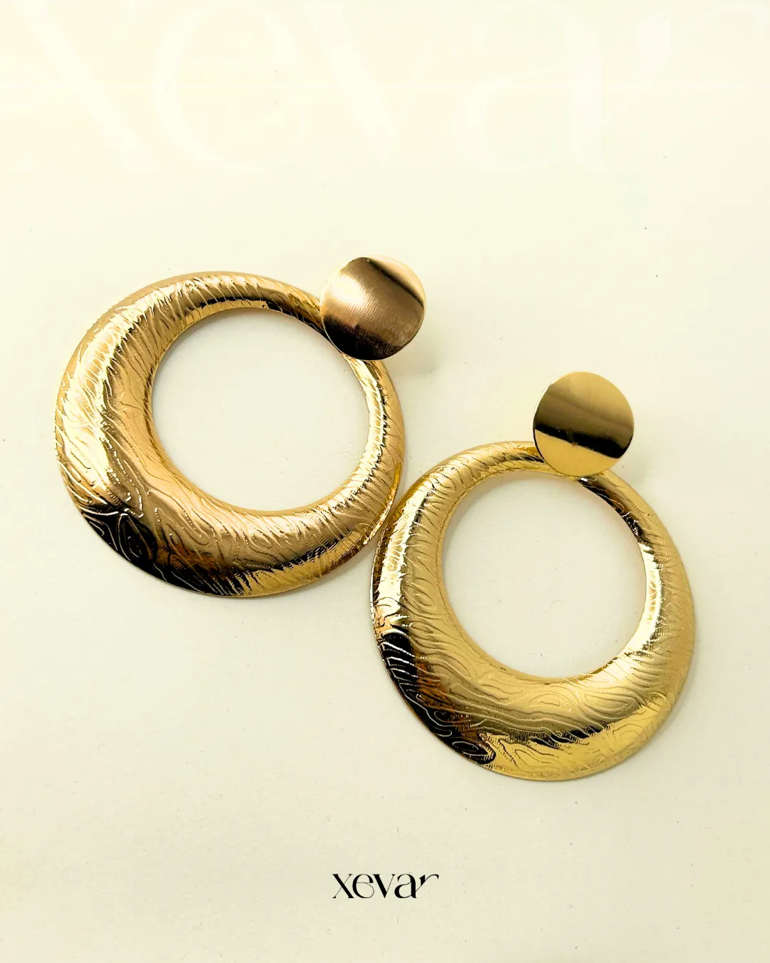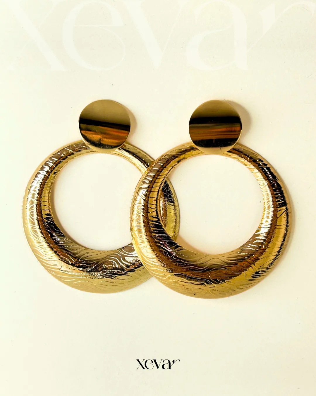 Bold textured gold circle earrings designed for modern, statement-making style.