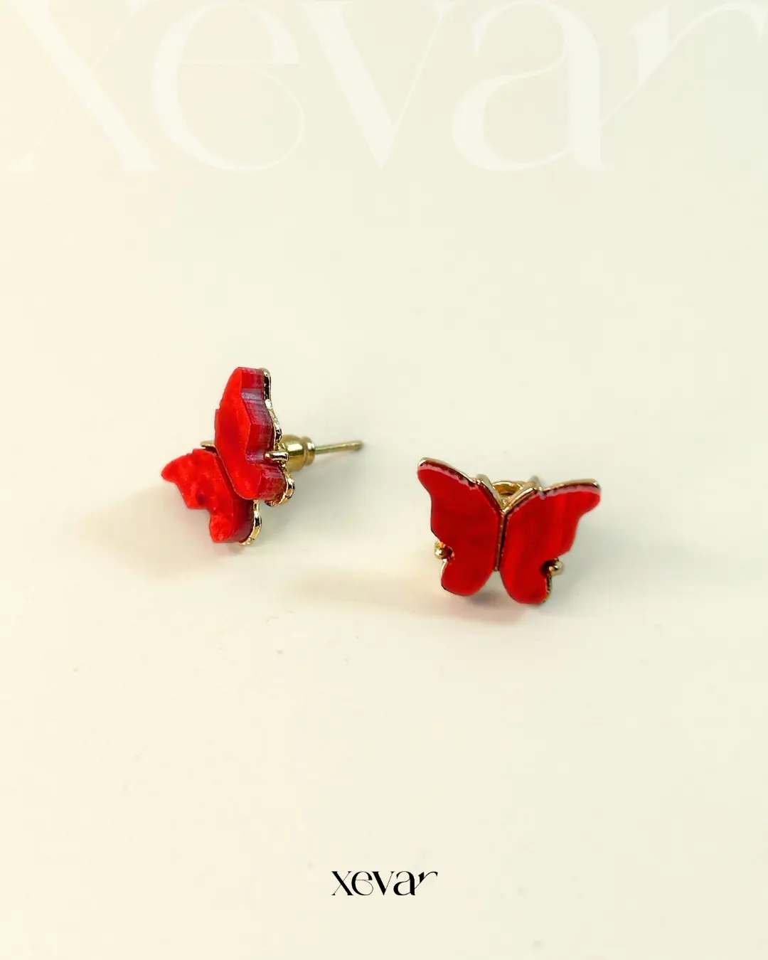 Bright Red butterfly stud earrings with a glossy enamel finish and gold-edged detailing—designed for a cheerful, elegant everyday look.