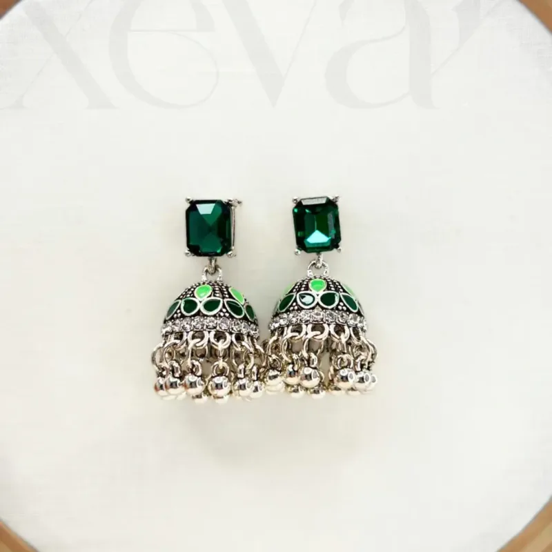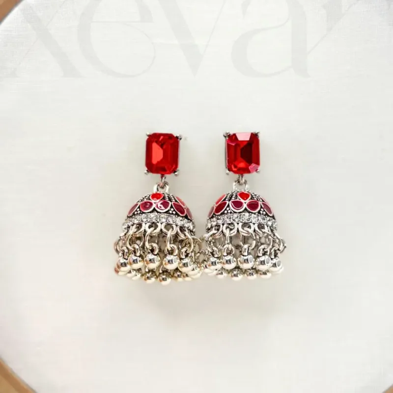 Set in a bright silver-toned base, these Stone Jhumka Earrings bridge the gap between vintage heritage and contemporary flair. They serve as a thoughtful ethnic gift for a loved one or a distinguished addition to your own jewelry collection—proving that classic craftsmanship never goes out of fashion.